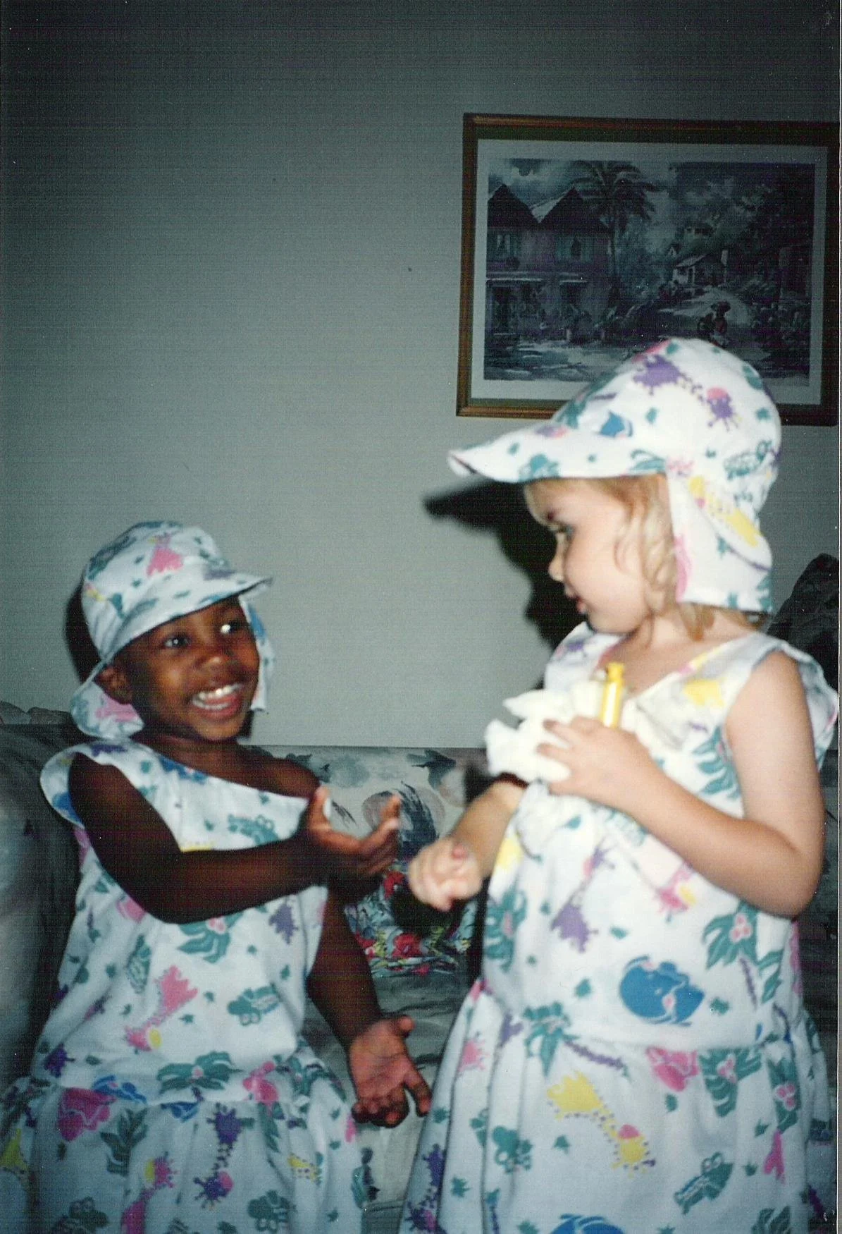 When I (Chrissy) was Peyton’s age, my mom (Cathy) would sew matching outfits for my friends, cousins and myself. Looking through the family album, you’ll find many pictures of us dressed in matching dresses or pyjamas.